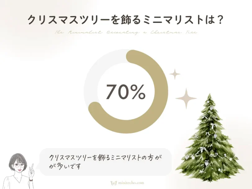 ミニマリストはクリスマスツリーを飾るのか調べてみたところ、クリスマスツリーを飾るミニマリストは7割、飾らないミニマリストが3割で、飾る人が多いことがわかりました。