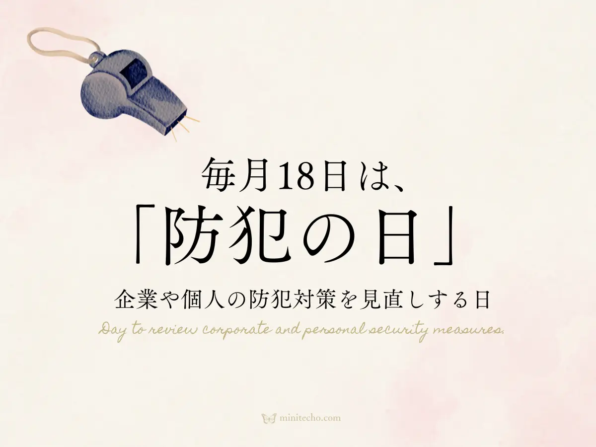毎月18日は「防犯の日」です。2012年に創立50周年を迎えた警備保障会社「セコム株式会社」が制定しました。日付は、18の1を「棒」に見立て「防」、8を「犯」とする語呂合わせから。