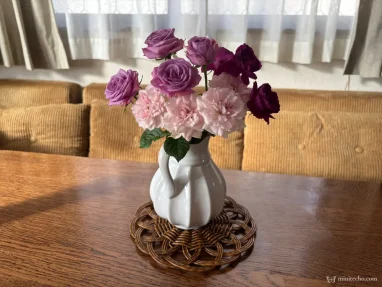 4,000円ほどのフラワーベースは、フォルムが可愛らしく安定感があり、シンプルなデザインでどんな花とも相性が良いです。夏冬は造花でナチュラルに飾り、春秋は花のある丁寧な暮らしを実践しています。