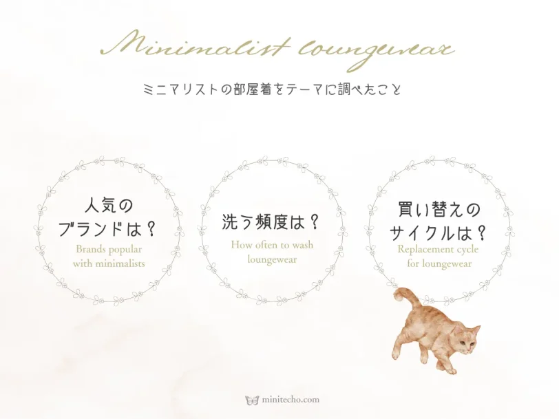 例えば「ミニマリストの部屋着」というテーマでは、ミニマリストの部屋着事情を一般の方と比較して紹介しています。この記事を書く上で、ミニマリストに人気のブランド・洗う頻度・買い替えサイクルなどを調べることで、自分の学びになっています。