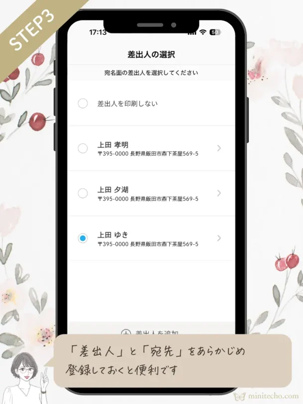 作り方③ 宛先・差出人を選ぶ